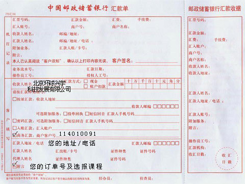 匯款單附言處請(qǐng)寫明:1.報(bào)名后產(chǎn)生的訂單號(hào) 2.您所選報(bào)的課程
