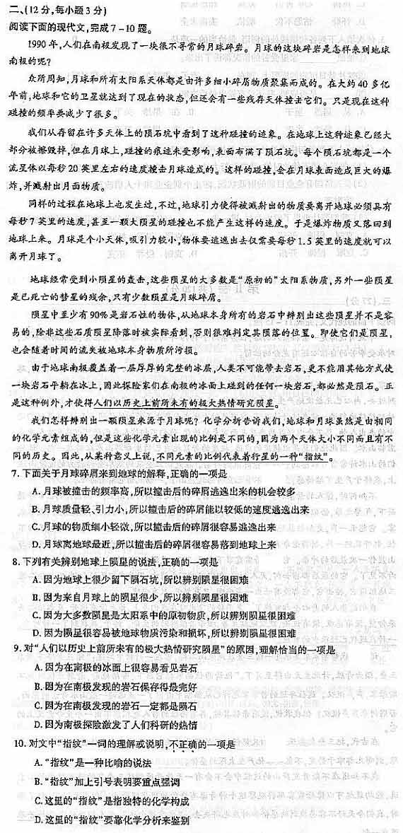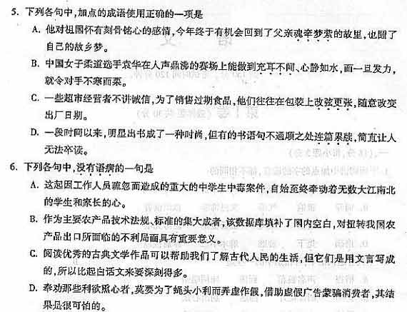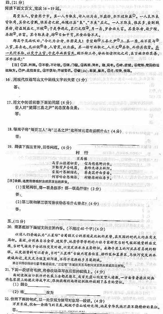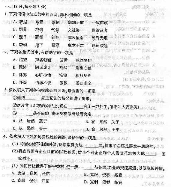 2004年全國成人高等學(xué)校招生統(tǒng)一考試語文試卷及答案