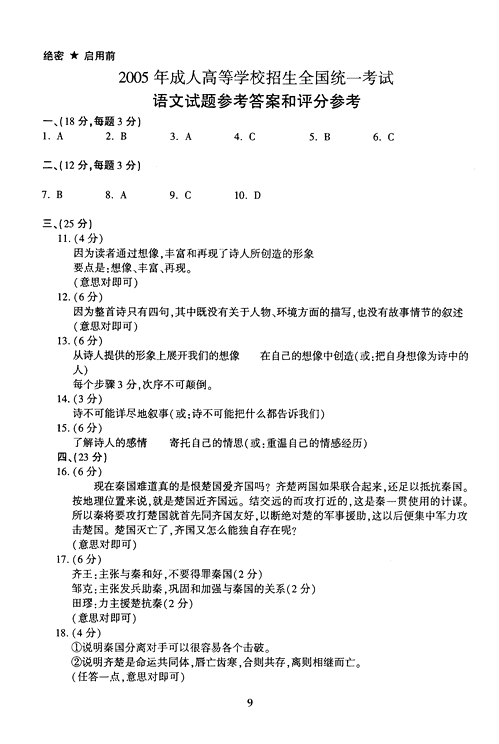 - 2025成人高考語文真題及答案解析匯總2025-10-22