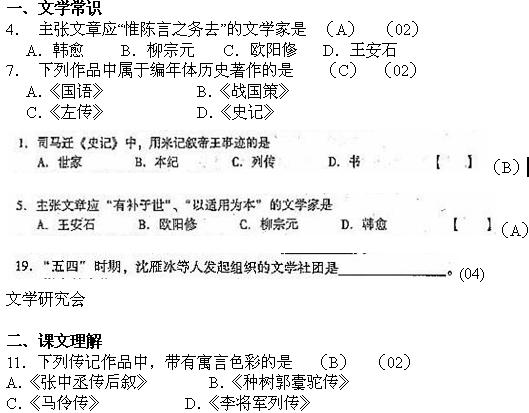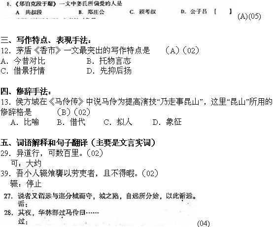 大學語文專升本記敘文歷年考題復習指導