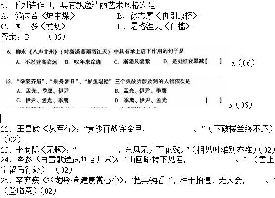 詩歌單元歷年真題