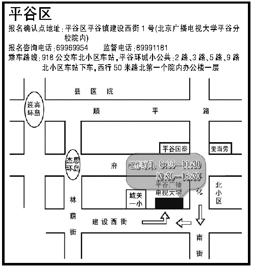 2009年成考北京平谷區(qū)現(xiàn)場(chǎng)報(bào)名確認(rèn)地點(diǎn)