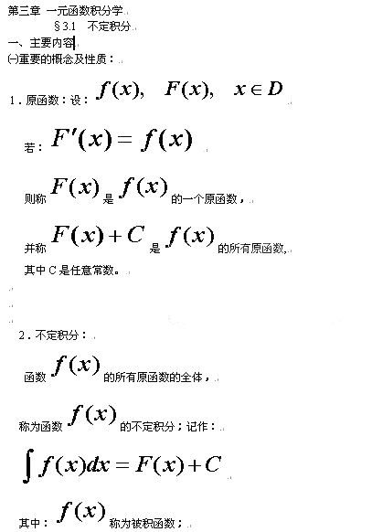 成人高考高等數(shù)學(xué)(一)復(fù)習(xí)不定積分