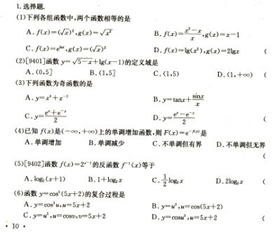 2011成人高考專升本高等數(shù)學(xué)練習(xí)題(1)