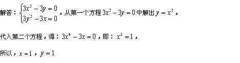 兩個(gè)二元函數(shù)怎么求方程組的如3X的平方―3Y=0和3y的平方―3x=0怎么求