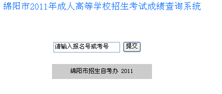 點(diǎn)擊進(jìn)入>>綿陽2011年成人高考成績查詢?nèi)肟?/FONT>