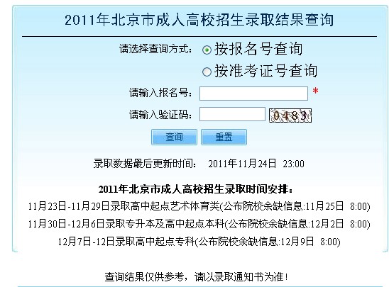 北京2011年成考錄取結(jié)果查詢系統(tǒng)已開通