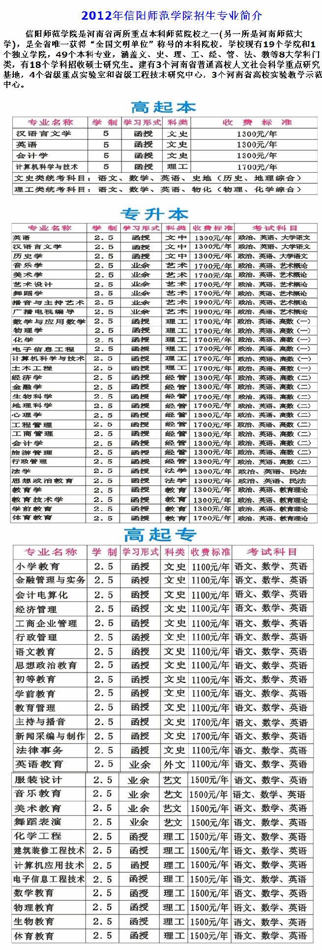 信陽(yáng)師范學(xué)院2012年成人高考招生簡(jiǎn)章