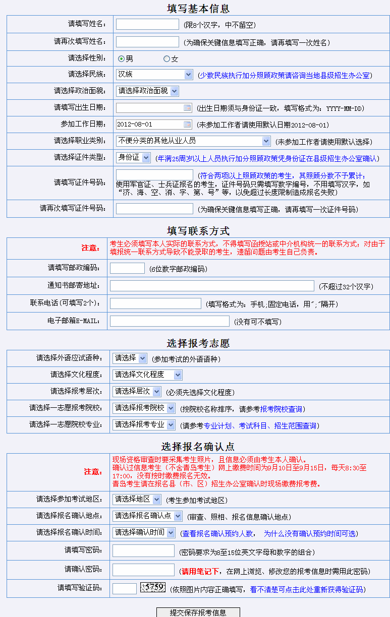 山東省2012年成人高考網(wǎng)上報名入口