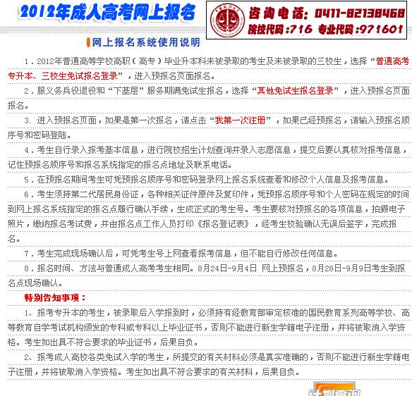 遼寧省2012年成人高考網(wǎng)上報名入口開通