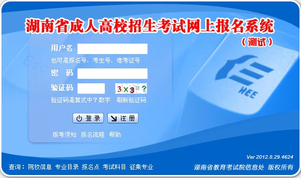 湖南省2012年成人高考網(wǎng)上報名入口開通