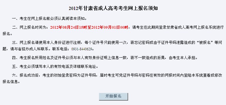 甘肅省2012年成人高考報(bào)名入口開通