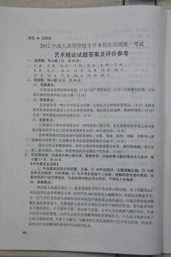 當(dāng)前位置: 首頁 > 成人高考 > 成人高考?xì)v年試題 > 2012年成人高考專升本藝術(shù)概論真題答案(完整無水印版)