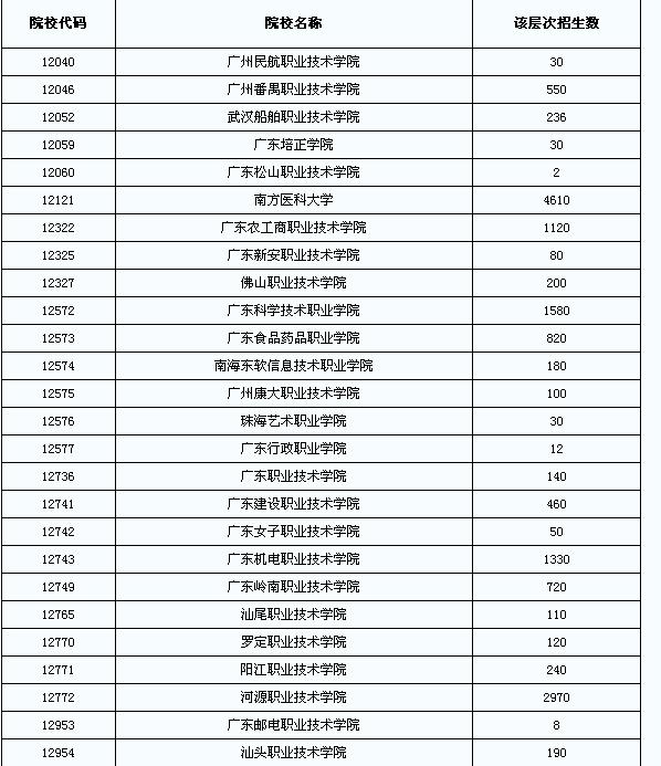 摘要 廣東2012年成人高考??坪跇I(yè)余班招生計劃
