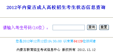 內(nèi)蒙古2012年成人高校招生考生狀態(tài)信息查詢