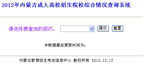 內(nèi)蒙古2012年成人高考綜合情況查詢系統(tǒng)