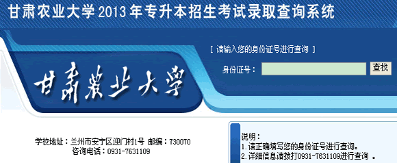 甘肅農(nóng)業(yè)大學(xué)2013年專升本錄取查詢?nèi)肟?/h1>