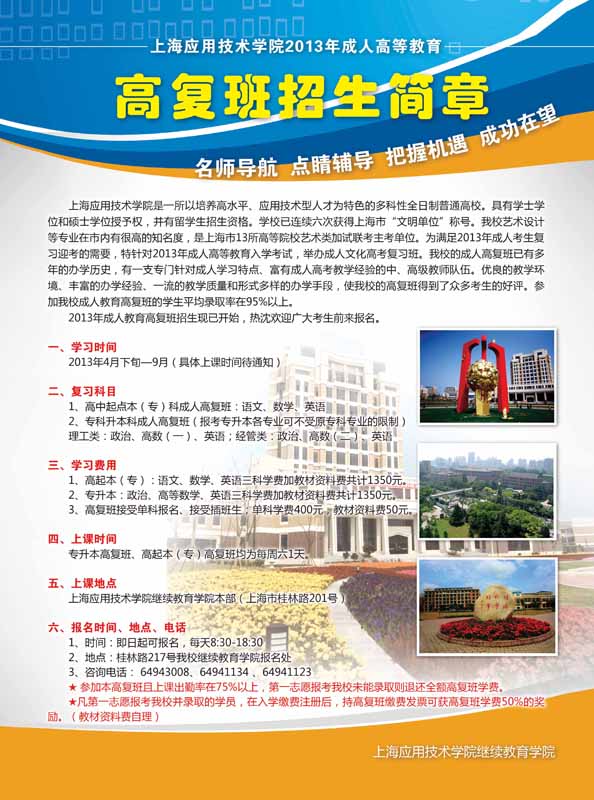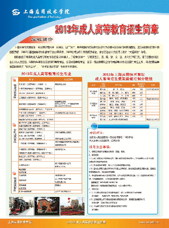 2013年上海應(yīng)用技術(shù)學(xué)院成人高等教育招生簡章