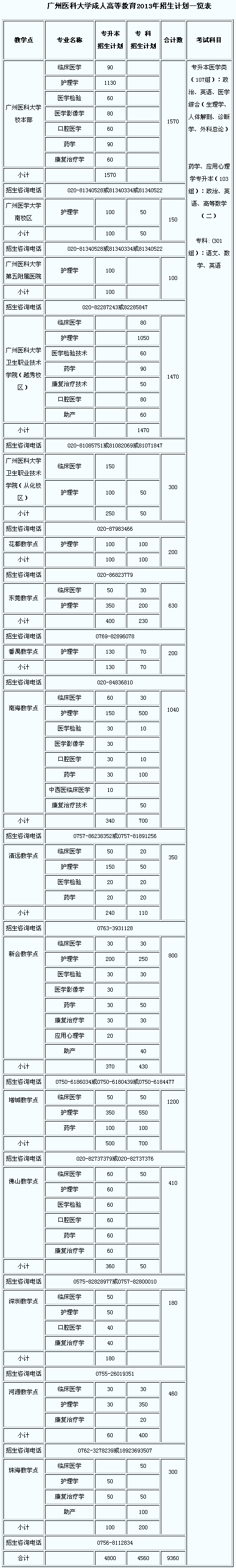 2013年,廣州醫(yī)科大學(xué)成人高等教育招生計劃9360人。