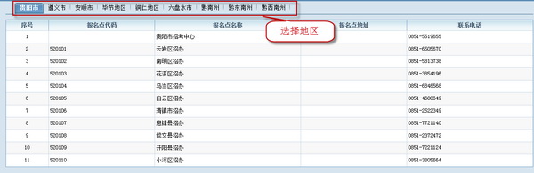 系統(tǒng)中提供了各市(州)考試報名點(diǎn)信息查詢,可以查詢到報名點(diǎn)的地址、聯(lián)系方式,具體如下所示: