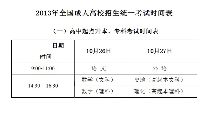 ?2013年成人高考考試時(shí)間確定:10月26-27日