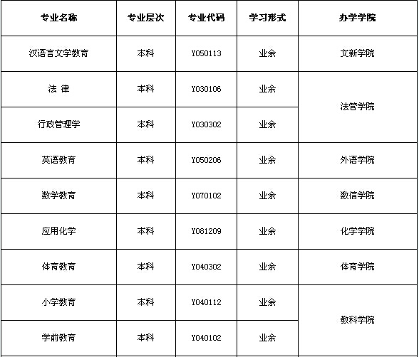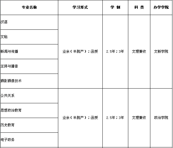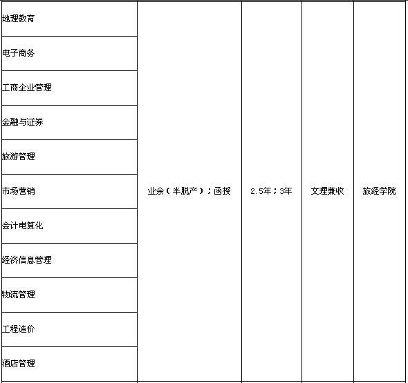注:業(yè)余(半脫產(chǎn))學(xué)制為2.5年;函授學(xué)制為3年。??普猩鷮I(yè)一覽表