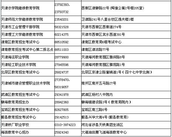 天津市2014年成人高考預(yù)考報(bào)名點(diǎn)