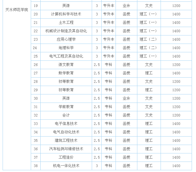 天水師范學院2014年成人高考招生簡章