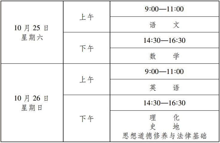 (三)高中起點(diǎn)升本、??瓶荚嚂r(shí)間
