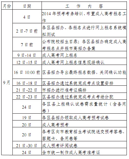 天津市2014年成人高考日程表