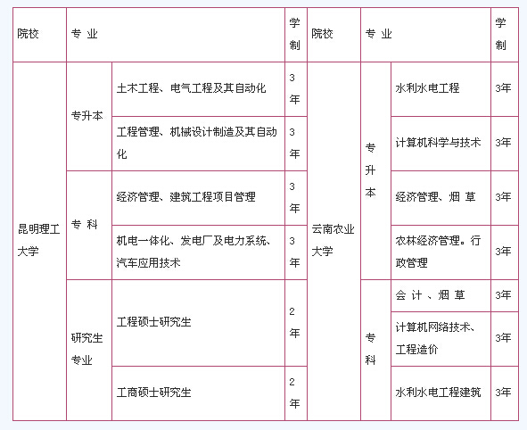 昆明理工大學(xué)楚雄應(yīng)用技術(shù)學(xué)院,與省內(nèi)外多所院校聯(lián)合辦學(xué),現(xiàn)已開設(shè)18個專業(yè),32個教學(xué)班,有成人學(xué)員1000多人。為充分發(fā)揮“優(yōu)勢互補”,實現(xiàn)“強強聯(lián)合”,給廣大求學(xué)者提供更多更好的選擇機會,我院將繼續(xù)面向全州廣大干部、職工及社會青年招收??啤⒈究茖W(xué)員,具體事項如下: