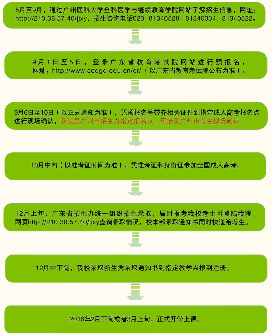 廣州醫(yī)科大學2015年成人高考報名流程圖