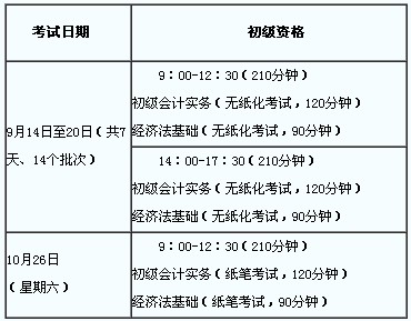 2013年初級會計職稱考試時限