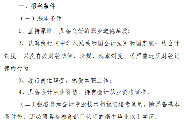 初級(jí)會(huì)計(jì)職稱考試報(bào)名條件
