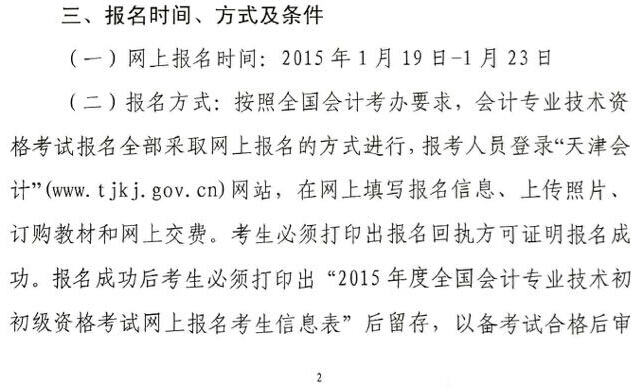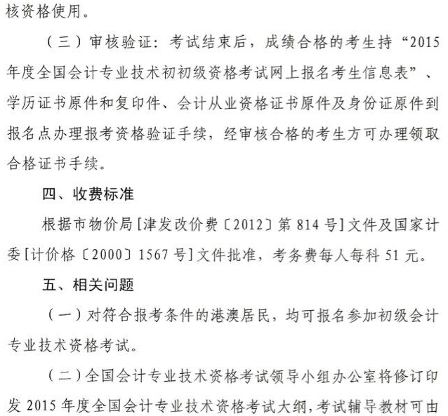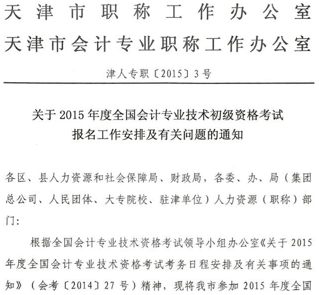 天津2015年初級(jí)會(huì)計(jì)職稱考試報(bào)名工作安排及有關(guān)問題的通知