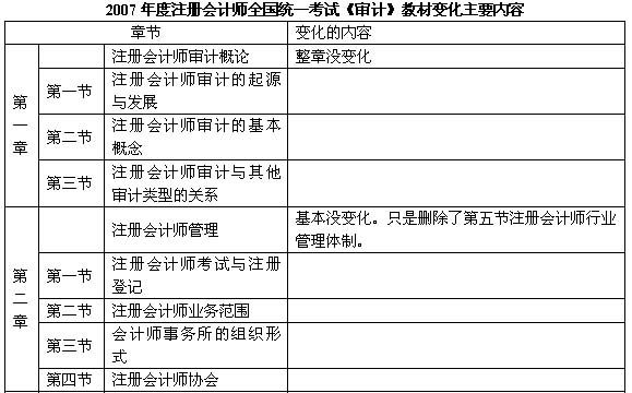 由于2006年2月15日頒布了新的審計(jì)準(zhǔn)則,因此,2007年教材變化很大,詳細(xì)變動(dòng)如下表: