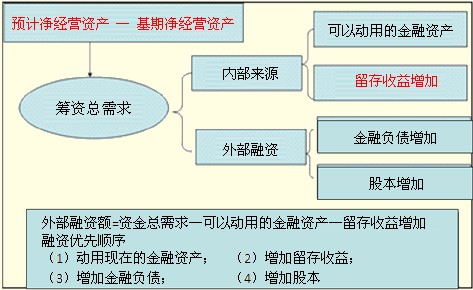 外部融資額=(預(yù)計(jì)凈經(jīng)營資產(chǎn)-基期凈經(jīng)營資產(chǎn))-可以動用的金融資產(chǎn)-留存收益增加