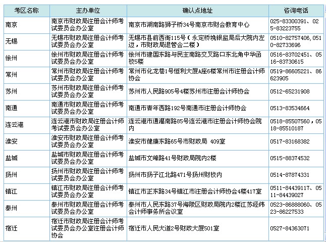 江蘇省2013年注冊會計(jì)師資格審核確認(rèn)點(diǎn)地址及電話