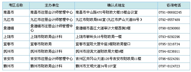 江西省2013年注冊會計師資格審核確認點地址及電話