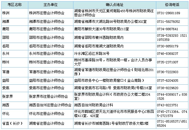 湖南省2013年注冊(cè)會(huì)計(jì)師資格審核確認(rèn)點(diǎn)地址及電話