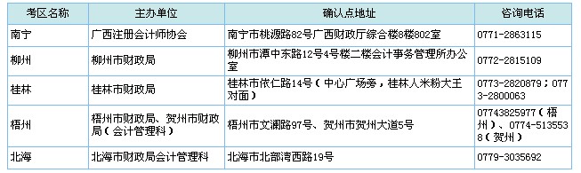 廣西省2013年注冊(cè)會(huì)計(jì)師資格審核確認(rèn)點(diǎn)地址及電話