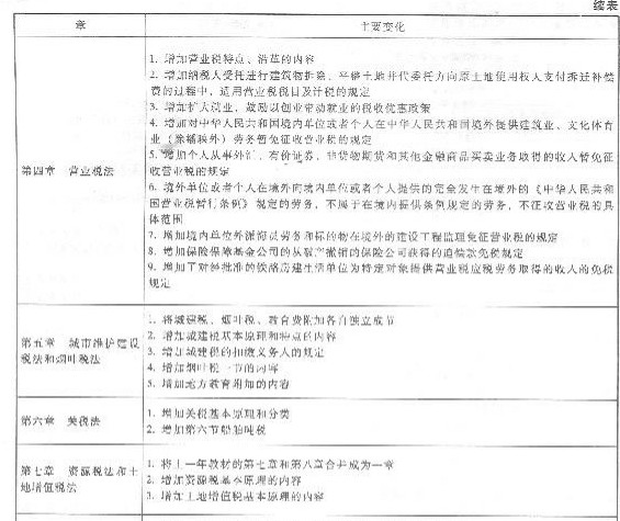 教材主要變化體現(xiàn)在進(jìn)行章節(jié)合并和進(jìn)行各章政策補(bǔ)充調(diào)整兩個(gè)方面: