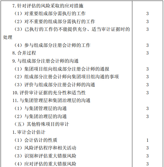 4.財(cái)務(wù)報(bào)表審計(jì)中對(duì)特殊項(xiàng)目的考慮,包括對(duì)舞弊和法律法規(guī)的考慮、審計(jì)溝通、對(duì)集團(tuán)財(cái)務(wù)報(bào)表審計(jì)的特殊考慮、利用他人的工作,以及對(duì)會(huì)計(jì)估計(jì)、關(guān)聯(lián)方和期初余額等其他特殊項(xiàng)目的審計(jì);