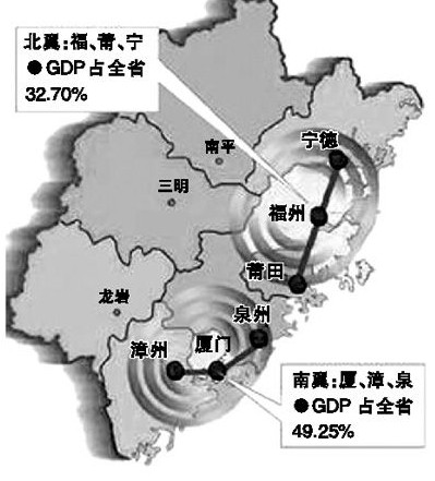 位于福建南部的廈漳泉和北邊的福州、莆田、寧德被稱為同城化的“南北兩翼”,其中廈漳泉先走一步,已提出開通城際公交、電話區(qū)號(hào)統(tǒng)一、取消漫游、銀行手續(xù)費(fèi)降低等具體措施。