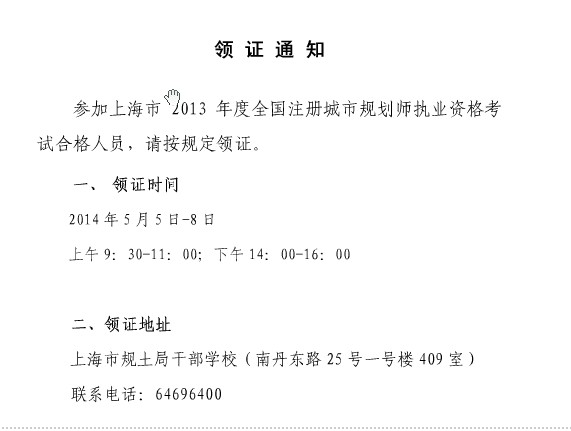 上海2013年城市規(guī)劃師考試領(lǐng)證通知