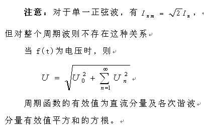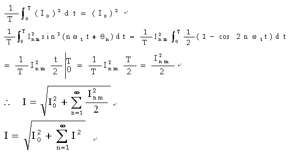 由此可見,非正弦周期電流的有效值等于它的直流分量及各諧波分量有效值的平方之和的平方根。