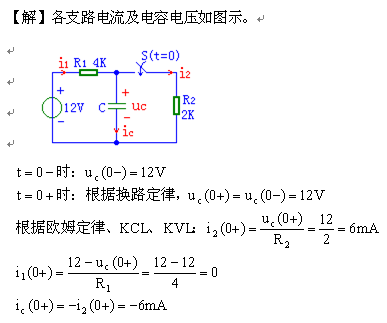 求換路后的瞬間,電容的電壓和各支路的電流。