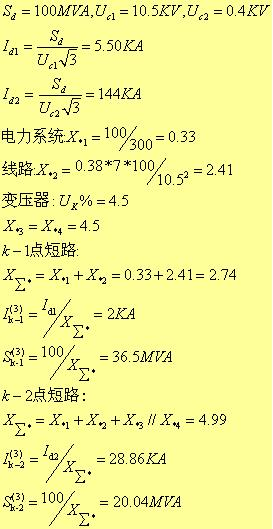 K-2點短路:三相短路電流IK-2=28.86KA三相短路容量SK-2=20.04MW