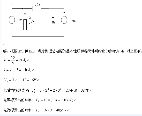 例1-2試計(jì)算下面電路中的每個(gè)電阻消耗的功率和電源發(fā)出的功率。