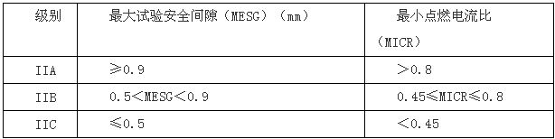第2.4.1 最大試驗(yàn)安全間隙(MESG)或最小點(diǎn)燃電流(MIC)分級(jí)
